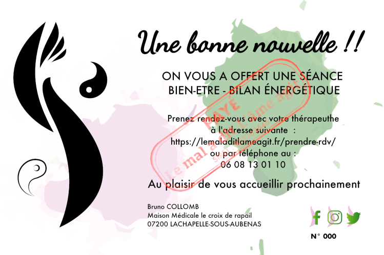 établir votre bilan énergétique et de profiter d’une séance de régularisation de vos énergies avec Bruno COLLOMB.